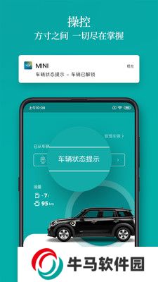 1、是專為廣大mini車主制作,軟件可以幫助用戶車輛互聯(lián),實(shí)現(xiàn)智慧駕駛。