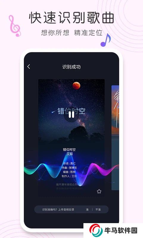 歌曲識(shí)別當(dāng)中采用了極為先進(jìn)的音頻識(shí)別技術(shù),所整理的識(shí)別功能能夠在短時(shí)間內(nèi)進(jìn)行精準(zhǔn)的識(shí)別到播放的音樂(lè)片段,識(shí)別完成后只需要點(diǎn)擊就可以將其保存到歌單當(dāng)中。
