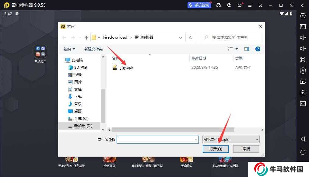 5、在彈出的窗口中,點擊解壓后的APK文件,然后點擊打開。