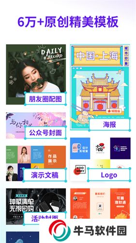 1、6W+精美主題模板可以直接使用,加圖片、視頻、GIF等內(nèi)容生成你的專屬設(shè)計(jì)。