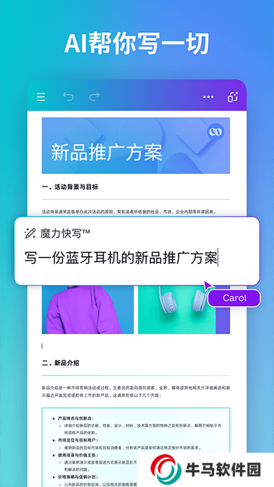 3、一頁文檔包羅萬象,打破Word、WPS限制,搭配魔力快寫,輕松提高寫文效率。