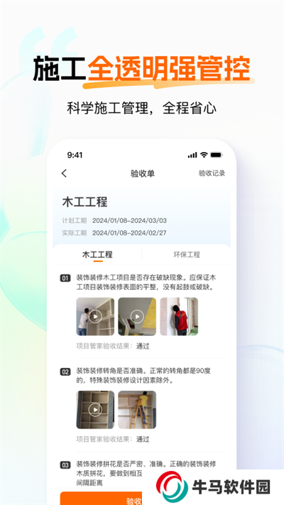 3、實時監(jiān)測工程的進度,記錄家裝的施工狀態(tài)和時間,隨時掌握家裝施工的進度。