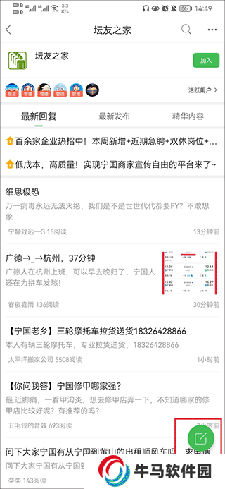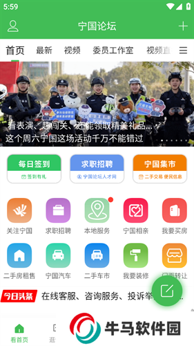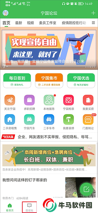 1、打開寧國論壇app,在首頁中點擊下方逛論壇。