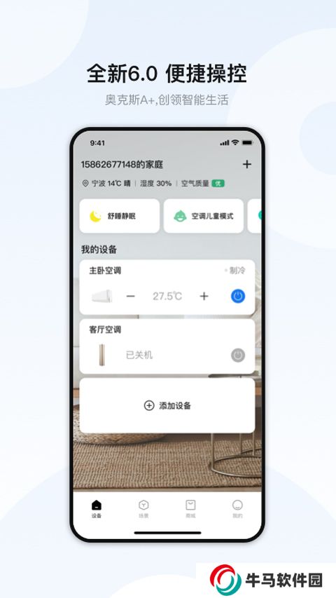 奧克斯空調(diào)遙控器是專為奧克斯旗下智能空調(diào)打造的遙控器軟件,也被叫做奧克斯A+。依托奧克斯自己研發(fā)的云計(jì)算技術(shù),只需連接家庭WiFi就會(huì)自動(dòng)匹配空調(diào)型號(hào),通過手機(jī)就能調(diào)節(jié)空調(diào)模式、開關(guān)、eco等設(shè)置,再也不用擔(dān)心找不到空調(diào)遙控器了。支持對(duì)空調(diào)的場(chǎng)景模式進(jìn)行預(yù)設(shè),一鍵設(shè)置好空調(diào)的模式、溫度、風(fēng)向等參數(shù),不用再一步一步設(shè)置。