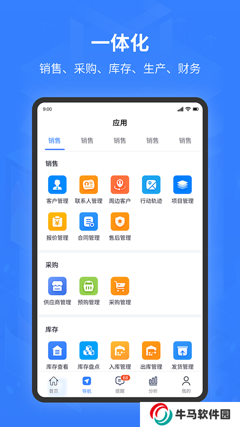 1、客戶錄入、銷售跟進、移動開單等功能都有涵蓋,輕松實現(xiàn)業(yè)務(wù)全場景無縫連接。