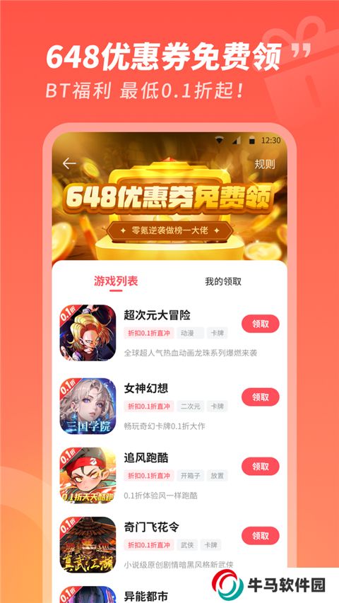 1、聚集了海量0.1折充值的精品手游,送648免費(fèi)充值,享受高福利折扣優(yōu)惠。